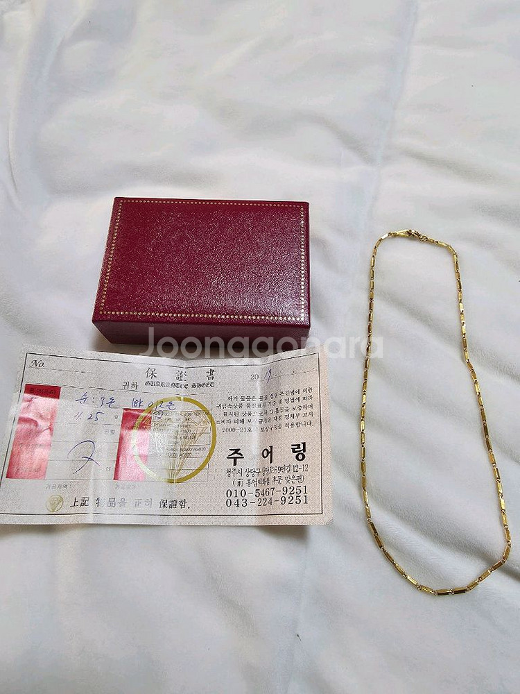 순금 3돈목걸이입니다. 18k고리포함가격입니다. 보증서와 케이스가 함께 드립니다. 길이는43cm입니다. 지역은 충북 청주입니다. 무적권 5만원권 현금거래합니다. 계좌안받습니다. 금방동행해드립니다.