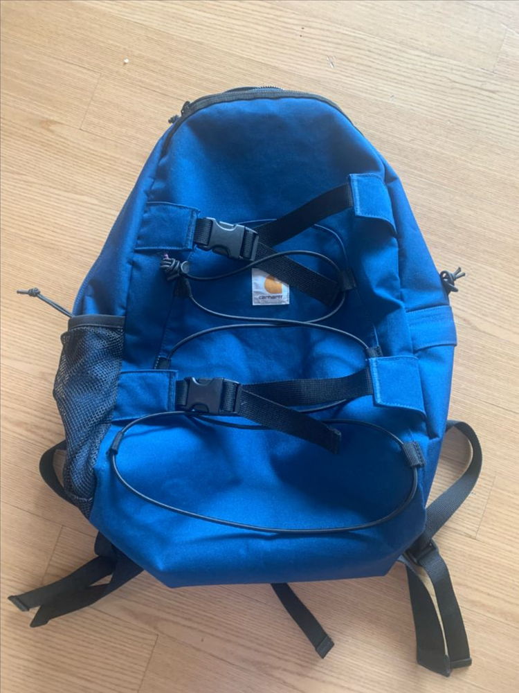 칼하트 킥플랩 백팩입니다 파란색인데 이게 구하기 힘든 색상입니다. 캠핑갈때 소품이나 옷가지들 넣고 다니는데 썼어요 수납공간이 많아서 편리하고, 내구성이 좋아서 오래 사용할 수 있어요. 지퍼마다 달려있는 스트링들까지 모두 빠지지않고 있습니다 대전지역 직거래가능하고 기타지역은 택배비 4,000원 추가됩니다 블랙 스트랩과 지퍼로 포인트를 준 디자인이고, 전체적으로 깔끔한 상태입니다. 실용적인 크기로 일상용이나 여행용으로 좋을 것 같아요.
