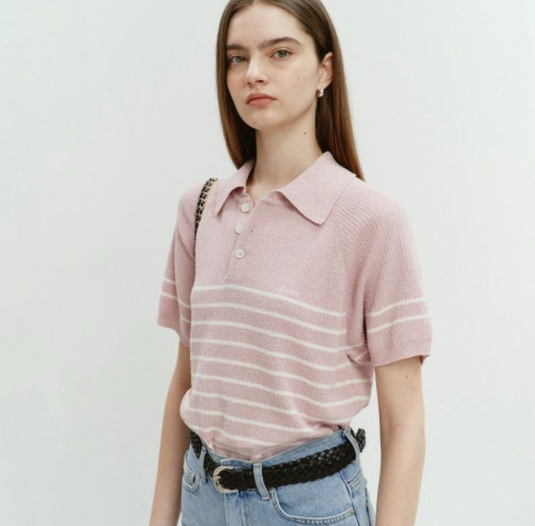 던스트 스프라이트 니트 반팔 입니다. 싸이즈 55-66 가능 총기장 60 가슴반품 50 입니다. 핑크색 바탕에 흰색 스트라이프가 들어가 시원해보입니다. 청바지나 면바지 어디에도 잘 어울립니다.