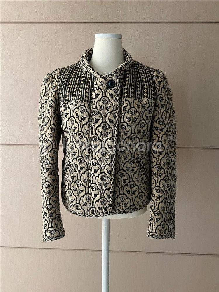 독특한 패턴이 돋보이는 이자벨마랑 퀼팅자켓입니다. 전체적으로 컨디션 좋습니다. 표기 사이즈 38 품 46cm 총길이 53cm 어깨 9cm
