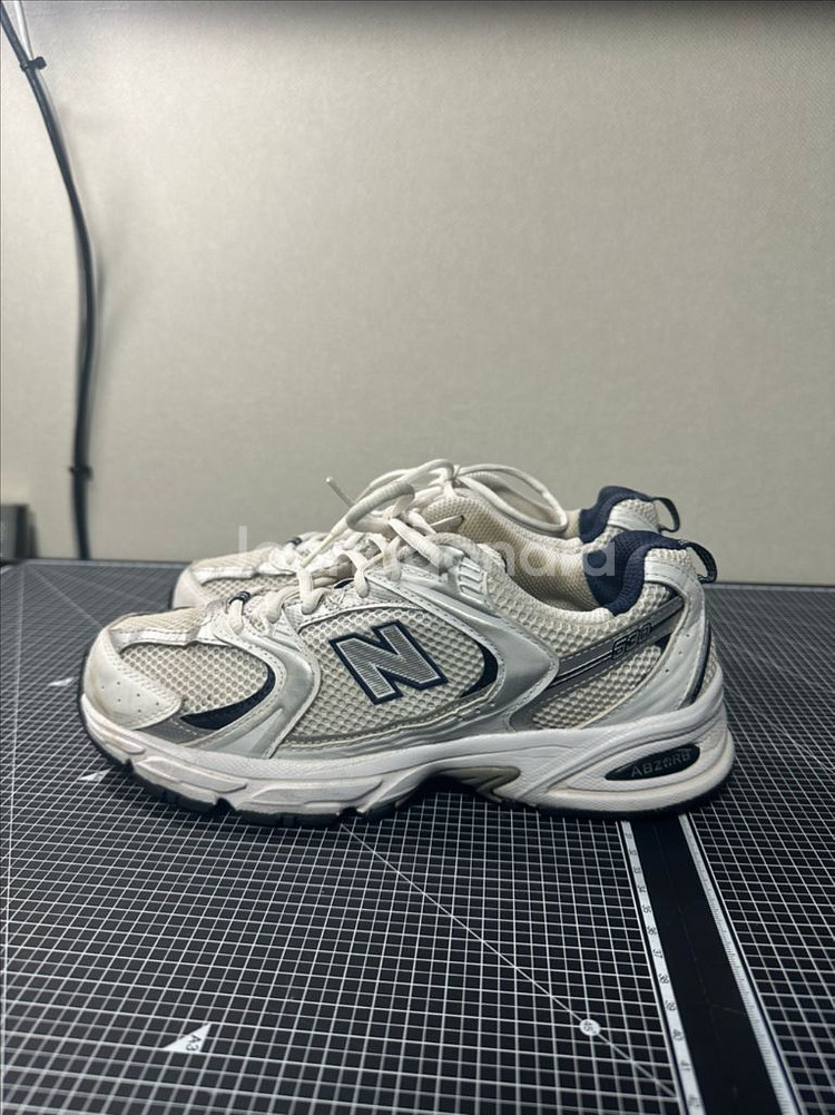 뉴발란스 530 운동화입니다! 사이즈는 250mm, 색상은 흰색과 회색 조합입니다 - ABZORB 쿠셔닝으로 편안한 착화감을 제공합니다 - 데일리 운동화로 좋습니다 전체적으로 사용감은 있지만, 편하게 신으실 분에게 추천드려요