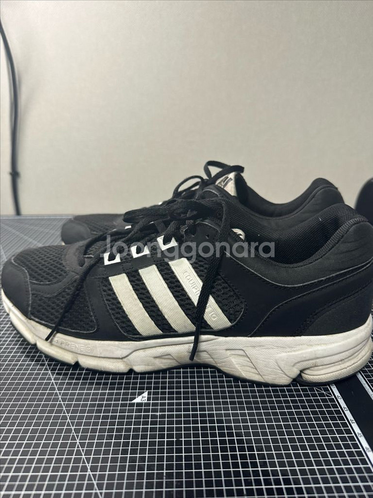 아디다스 이큅먼트 블랙 운동화입니다 사이즈는 285mm 메쉬 소재로 통기성이 좋습니다 신발 밑창에 사용감이 있습니다