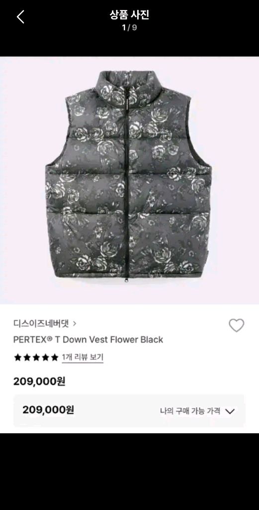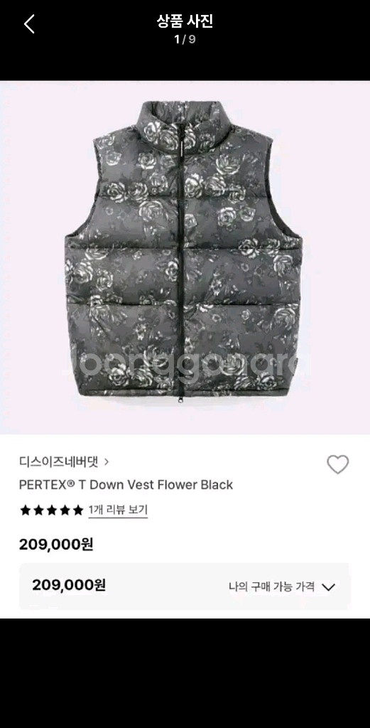 디스이즈 네버댓 플라워 블랙 다운패딩 조끼!새상품급! 사이즈~100 실착3회!단시간! 새상품급 컨디션! 구매가~209000원! 남여공용!