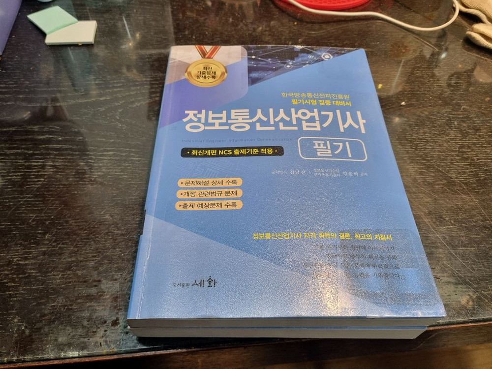 정보통신산업기사 필기시험 대비 교재입니다. 표지에 약간의 사용감이 있지만 내용은 깨끗한 상태예요. 시험 준비하시는 분께 도움될 것 같습니다. 세화출판사 2025 최신판 25,000원