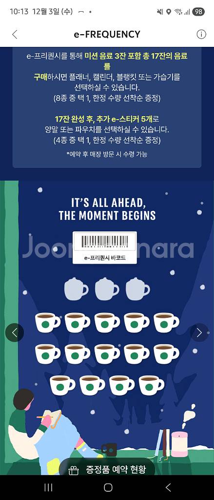 스타벅사 프리퀀시 일반으로 미션 구합니다. 일반 2개로 미션1 교환이구요 제가 지금 미션 6개개 필요해서 일괄로 하시면 일반 12개 <> 미션 6개 입니다 챗 주세요