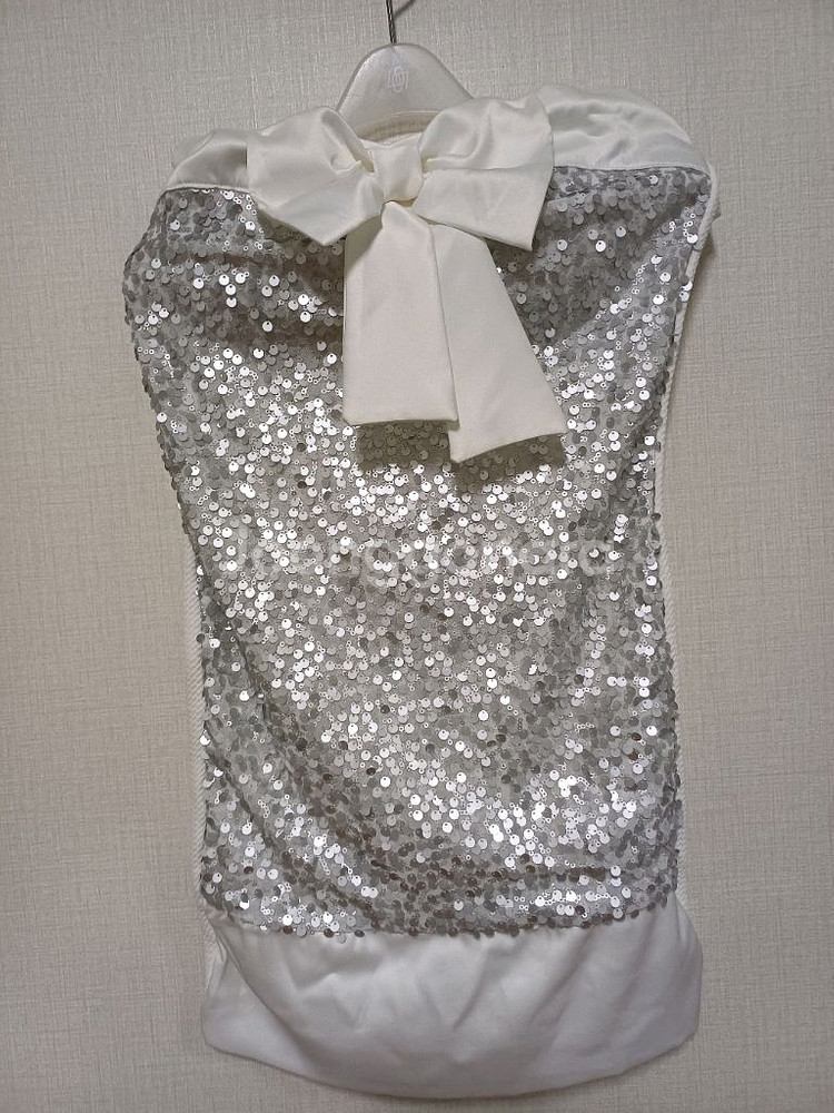 일반적인 반짝거리는 흔한 시퀸즈가 아닙니다 무광 실버라서 진짜 고급스러워보여요 디자인도 사랑스럽고 패드가 내장되어있으며 뒤엔 배딩처리가되어있어서 44 55 분들 다 잘 맞으실꺼에요 가슴둘레 스트레치 안했을땐 35cm나오고 길이 60cm나와요. 연말파티에 시선집중 제대로 될꺼에요! 새상품이며 일택3000반택1500 입니다