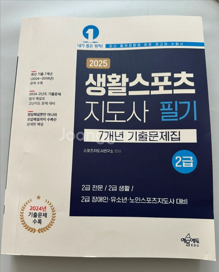 2025년 생활스포츠지도사 필기 7 기출문제집 2급입니다 2024년부터 2018년까지 기출문제가 수록되어 있습니다 새상품입니다 문제은행만 돌려도 필기합격합니다. 올해2025년 합격했습니다. 책은 새상품입니다. 올해 필기시험지도 같이 드립니다