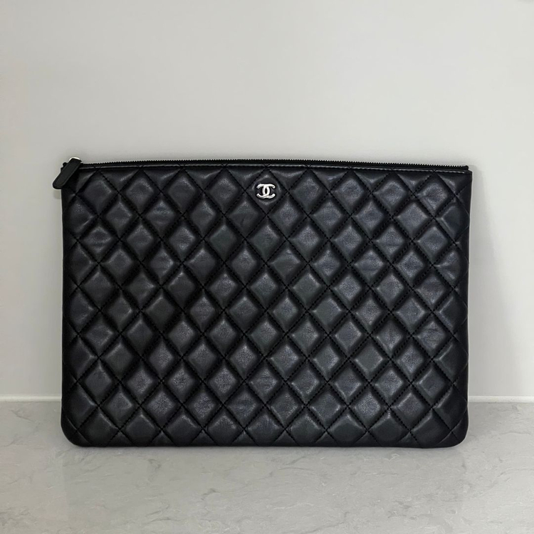 샤넬 클래식 라지 클러치 파우치 램스킨 블랙 은장 A82552 램스킨 실버 하드웨어 사이즈: 24 x 35 x 1.5 cm 부속품: 북렛, 게런티카드, 더스트백, 케이스 게런티: 22XXXXXX 상태: 사용감이 있지만 대체적으로 깨끗한 상품 **빈티지 상품 특성상 반품이 어렵습니다. 신중한 구매 부탁드립니다**