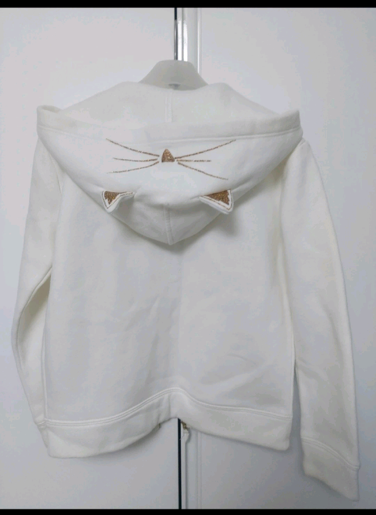 귀여운 고양이 귀 디자인의 흰색 기모후드티입니다 후드에 고양이 자수 귀 디테일이 있어 더욱 깜찍합니다