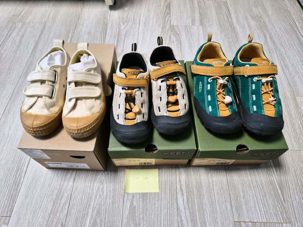 올해 봄(2025년)에 정가 10.9만 원 주고 구입한 킨 재스퍼 키즈 185 195 사이즈입니다. 아이 발이 금방 커서 3개월도 못 신었어요 자전거 타는 아이라 앞코가 좀 까짐 있어요 스웨이드라 겨울에도 신기 좋아요 세탁하지 않은 상태입니다 (세탁하시면 더 깨끗하겠죠?) 그린은 더 몇번 안신어서 상태좋아요 ● 킨 아이보리 185 6.5만 ● 킨 그린 195 7만 ● 노베스타 키즈 스타마스터 베이지 28사이즈 (180-185) 3만 세탁완료 본 박스채 포장해드립니다