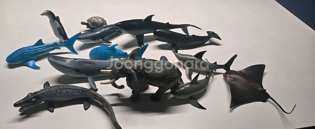 다양한 종류의 동물 피규어들이에요. 상어, 돌고래, 거북이 등 여러 종류가 포함되어 있고 상태는 양호한 편입니다. 아이들이 좋아할 만한 컬렉션이에요! 아이가 아쿠아리움, 박물관 여러군데에서 사서 모았던건데 이제 가지고 놀지 않아서 판매합니다. 택배비는 착불입니다.
