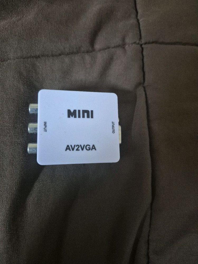 AV를 VGA로 변환해주는 미니형 어댑터예요. 컴팩트한 사이즈로 휴대하기 편리하고 상태 양호합니다.