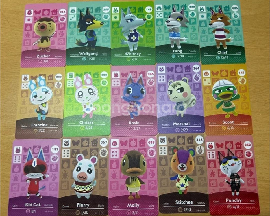 모동숲 주민 인식 카드입니다 복미판호환 인식 잘 됩니다 채팅 느릴 경우 오픈 채팅방 퍼머거부웅으로 와주세요 6장 이상 구매 시 택배비 무료 ⭐판매 목록이 많아서 모동숲 라이프 어플 참고해서 위시 사진 모아서 주시면 감사하겠습니다. + 타게임 아미보도 가능합니다 :) 젤다 스플레툰 O [ 늑대 ] 대장 5000원 로보 5000원 시베리아 5000원 모니카 5000원 늑태 5000원 비앙카 5000원 산드라 5000원 켄 5000원 릴리 5000원 [ 생쥐 ] 리카 5000원 이자벨 2000원 복자 1000원 [ 개구리 ] 레이니 5000원 / 북미판 정품 10000원 철컥 2000원 구리구리 1000원 왕서방 3500원 [ 오리 ] 귀오미 5000원 리처드 5000원 지키미 5000원 코코아 5000원 주디 5000원 나키 5000원 다랑어 3500원 앤 5000원 아잠만 5000원 케첩 5000원 [ 펭귄 ] 호떡 5000원 크리미 미니 2000원 펭수 5000원 [ 고양이 ] 히죽 5000원 캐비어 5000원 가북희 5000원 제인 5000원 밴덤 5000원 올리비아 5000원 클레오 5000원 쵸이 5000원 잭슨 5000원 사이다 5000원 뽀야미 5000원 빙티 5000원 유네찌 5000원 부케 5000원 예링 5000원 1호 5000원 마르 5000원 쇼콜라 5000원 찰스 5000원 / 정품 10000원 타마 5000원 [ 펭귄 ] 호떡 5000원 펭수 5000원 크리미 2000원 [ 큰 곰 ] 병태 5000원 곰도로스 1000원 [ 아기곰 ] 아 세 로라 5000원 글루민 5000원 머피 5000원 올리브 5000원 패치 5000원 마티 5000원 메이 5000원 미애 5000원 메이첼 5000원 곰비 5000원 팬타 5000원 재스민 5000원 / 한글판 정품 10000원 [ 토끼 ] 미첼 5000원 프랑소와 5000원 크리스틴 5000원 토시 5000원 토비 5000원 토니 5000원 릴리안 5000원 / 북미판 정품 15000원 루나 5000원 / 북미판 정품 15000원 이요 5000원 대길 5000원 서머 5000원 / 한글판 정품 15000원 n2 홉킨스 3500원 [ 다람쥐 ] 쭈니 5000원 아이리스 3500원 / 일본판 정품 5000원 리키 3500원 / 한글판 정품 5000원 스피카 5000원 다람 5000원 레베카 5000원 민트 5000원 핑키 5000원 실루엣 5000원 크리스 5000원 2호 5000원 파슬리 5000원 실바나 5000원 [ 코뿔소 ] 스트로베리 5000원 [ 코끼리 ] 오팔 1000원 티나 5000원 샐리 5000원 에끌레르 5000원 펑크스 1000원 피카 5000원 [ 독수리 ] 안데스 2000원 근엄 3000원 아폴로 5000원 [ 말 ] ✨ 안소니 5000원 유니오 5000원 마철이 1000원 센트엘로 1000원 슈베르트 5000원 [ 문어 ] ✨ 문복 5000원 문리나 5000원 기가 5000원 탁호 5000원 [ 사슴 ] ✨ 솔미 5000원 톰슨 5000원 나탈리 5000원 제시카 5000원 넬슨 5000원 피터 5000원 록키 5000원 자끄 5000원 브루스 5000원 요비 5000원 첼시 5000원 [ 햄스터 ] ✨ 뽀야미 5000원 애플 5000원 보스터 5000원 햄스틴 5000원 [ 개 • 강아지 ] ✨ 럭키 5000원 벤 5000원 베리 5000원 바닐라 5000원 존 5000원 카라멜 5000원 밥 5000원 토미 5000원 마롱 5000원 베이글 5000원 [ 악어 ] 용남이 5000원 [ 양 ] 차둘 5000원 아크릴 5000원 에뜨와르 5000원 잔디 2500원 [ 염소 ] 래미 2500원 [ 원숭이 ] ✨ 젤리 5000원 제천 2500원 키키 2500원 델리 2500원 몽티 1000원 시몬 1000원 [ 산리오 ] 산리오 6종류 세트 18000원 릴라 5000원 ❤ 마티 5000원 💛 에뜨와르 5000원💜 첼시 5000원🩷 피카 5000원 🩵 토비 5000원 💚 [ 정품 아미보 양도 1000원 ] 호랑이 : 티볼트 하마 : 올리버 , 가브리엘 개미핥기 : 설백, 퍼머거, 패트라, 스누티 , 소면 하마 : 화자 말 : 센트엘로 큰 곰 : 곰도로스 암소 : 미자 생쥐 : 복자 닭 : 금끼오 , 히킨