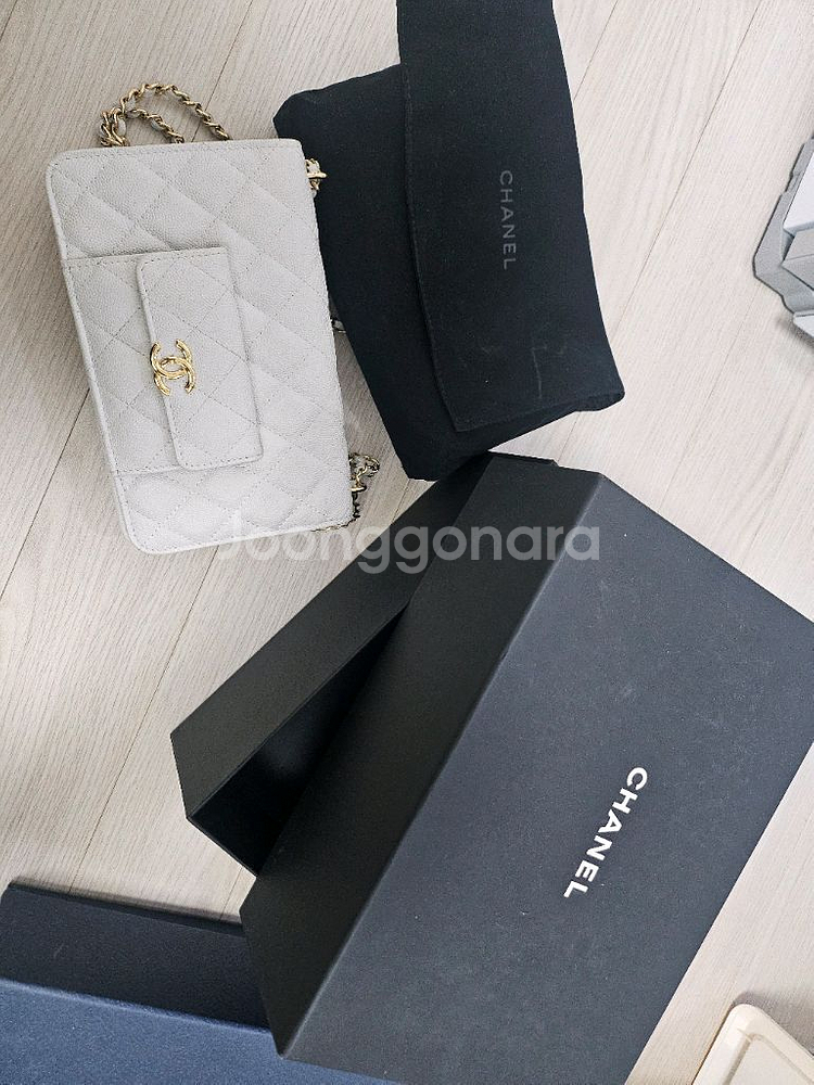 샤넬 정품 캐비어 레더 체인백이에요. 화이트 컬러로 깔끔하고 고급스러우며, 샤넬 박스와 더스트백 모두 포함되어 있어요. 상태 양호한 제품입니다.