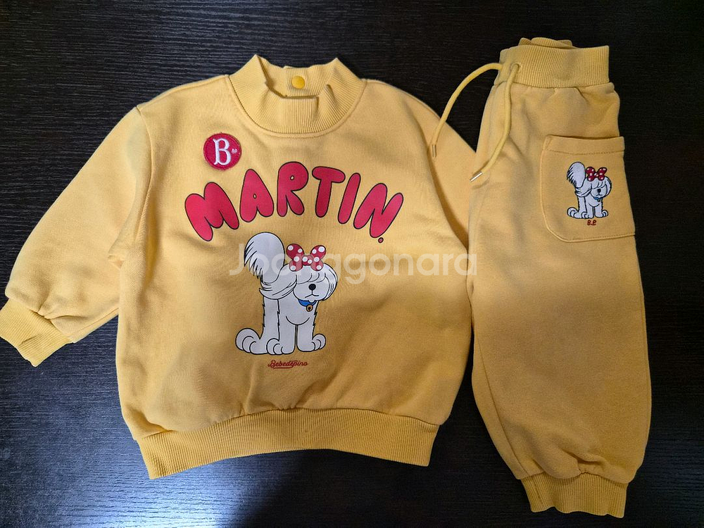 마틴 상하복 90 입니다.. 도톰한 원단이라 겨울에 입히기 딱이에요.. 새상품 구입후 5회 미만으로 입혀 전체적인 컨디션이 좋지만 일부러 찾지않음 잘 보이지도 않는 미세얼룩이 엉덩이쪽에 있어 최대한 잘 보이게 사진 찍어뒀으니 참고하세요