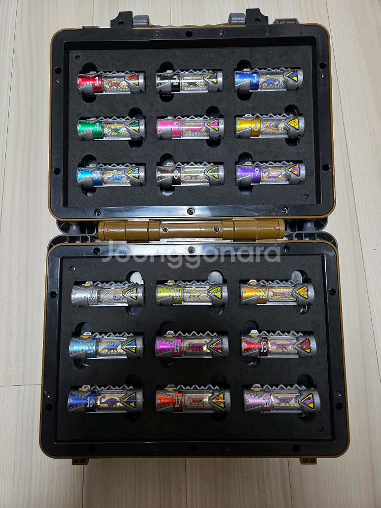 파워레인저 다이노포스(수전전대 쿄류쟈) DX 메탈릭 다이노셀(수전지) 세트 팝니다 <구성> 메탈릭 다이노셀 세트 1~23번, 1+, V, X(전26종) 레전드 다이노셀 5개 브레이브 박스 2개 <상태> 전26종 메탈릭 도장 다이노셀 세트로 사진상 보이는 그대로이며, 버튼 잘되고 파손없고 야광기능 정상입니다 ※중고상품이니 신중한 결정부탁드립니다(환불X)