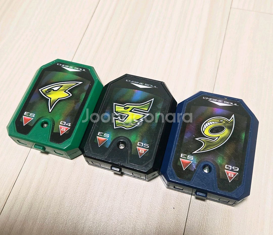 파워레인저 엔진포스(염신전대 고온쟈) 엔진소울 팝니다 <구성> 4, 5, 9번 엔진소울 <상태> 소리 잘나고 상태 양호합니다 새건전지 넣어서 보내드리겠습니다 ※중고상품이니 신중한 결정부탁드립니다(환불X)