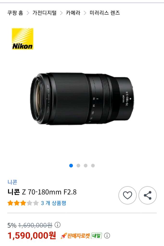 니콘 Z 마운트용 망원 렌즈로 F2.8 망원의 고급형 모델입니다. 2027까지 보증 15개월남아있고 5회미만상태로 새것처럼 깨끗하고 완전한 구성품이 모두 포함되어 있어요 안전거래환영이고 수수료포함입니다 쿨거래시 택배비무료 그외착불입니다 직거래시에도가격은 같습니다 최저가로 가격을낮추면서 필터는제외합니다 70ㅡ200 반값정도니 가성비최고라고생각합니다 영상에도많이들쓰신다더라고요 사진은주말이후올릴게요 그전에판매되면 발송전에 정품해지하고 제품사진보내드리고 안전거래할거면서 사기걱정하시는분은 안전거래의구조를모르시니 뒤로가기해주세요 거래내역 후기많이있으니 참고해주세요