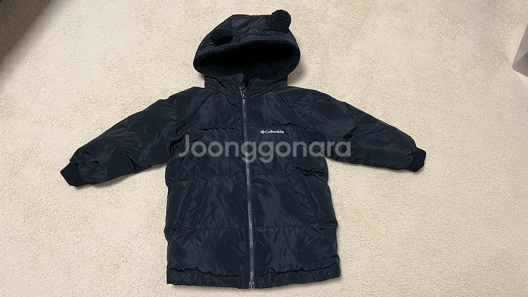 콜롬비아 패딩 110사이즈예요. 모자에 귀여운 귀 달려있어요. 깃털 새는 곳 없고 전체 상태 양호하나 소매 부분 재질상 보풀 조금 있어요. 택포 15,000원입니다. 교환X, 환불X