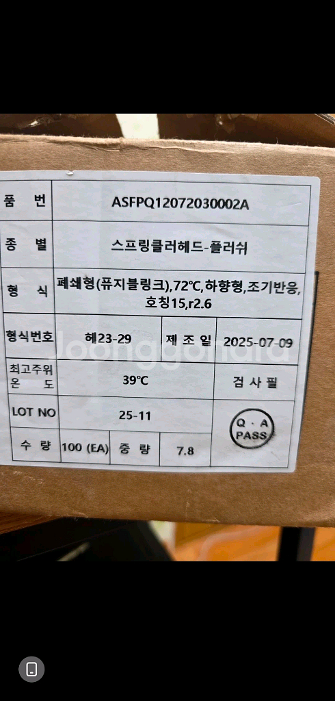 스프링클러헤드 7.8mm 미개봉 새제품이에요. 박스 포장 그대로 보관되어 있어서 상태 완전 좋습니다. 필요하신 분께 저렴하게 드려요 수량은 90개라고 보시면 됩니다 네고가능