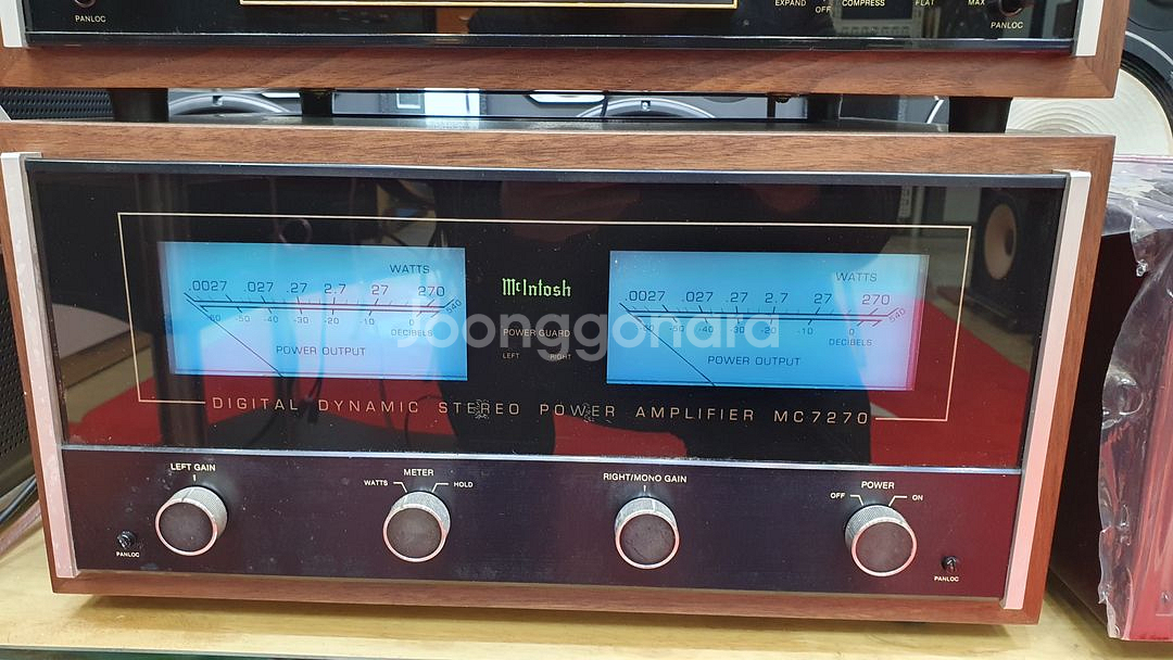 MC7270 디지털 파워앰프입니다. 브라운 우드 케이스에 LCD 디스플레이가 있어 출력 상태를 바로 확인할 수 있어요. 고급 오디오 장비로 상태 양호합니다. JBL스피커&야마하스피커 전문점 매킨토시MC7270 파워앰프/우드케이스/초민트급/NO기포 부산부전동 전자상가1층 아날로그오디오샆 문의 010-3863-6766 경동택배&고속버스/운임 6만원 가격 330만원