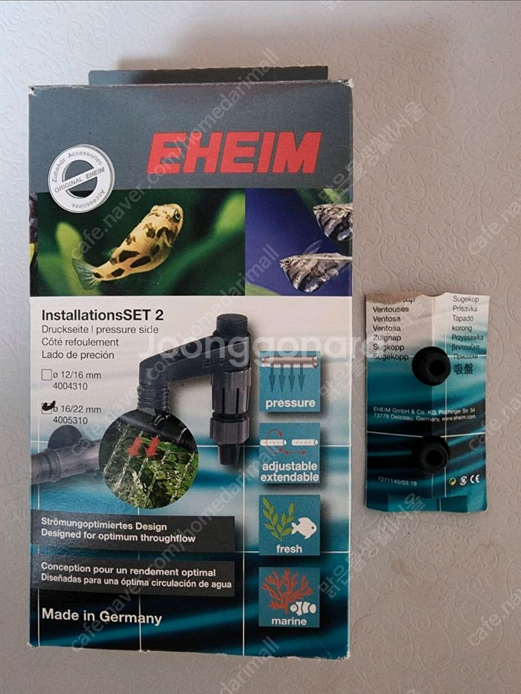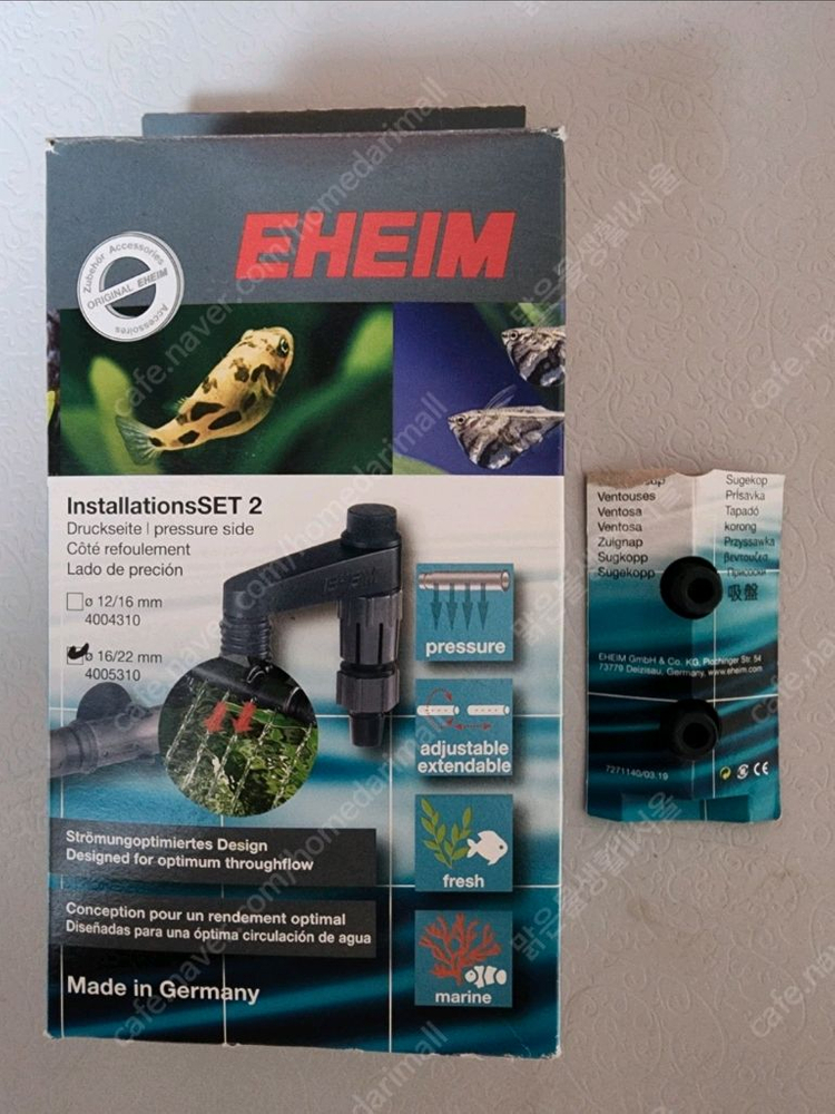 3년전에 구매하였습니다. 하나만 빼고 전부 미사용입니다. 물생활 정리로 내놓습니다. ----------------------------- ♤ 에하임 설치 세트용 (인디케이터) {2개} (4009650) ☆에하임 설치 세트용 노즐및 어댑터 부품 (4009700) (외부여과기의 호스 연결을 위한 부속품) 12/16, 16/22(각각 1개씩 들어있음) ♧에하임 입수관 16/22 (7275808) ♡에하임 출수 파이프 16/22 (4004710) ○에하임 엘보 파이프 12/16 {5개} (4014050) ●에하임 엘보 파이프 16/22 {5개} (4015100) □에하임 플렉서블 출수구 12/16 (4004600) ■에하임 출수관 세트 16/22 (4005310)+{한달사용} ♡에하임 디퓨저 16/22 전용 (4005651) ♤에하임 에어 디퓨저 (4002650) ----------------------------- 묶음판매합니다. 배송비 포함입니다. 우체국택배만 이용합니다. 직거래 가능합니다. 필요하신 분은 채팅주세요. 네고문의나 별도판매는 답변하지 않겠습니다. 감사합니다.