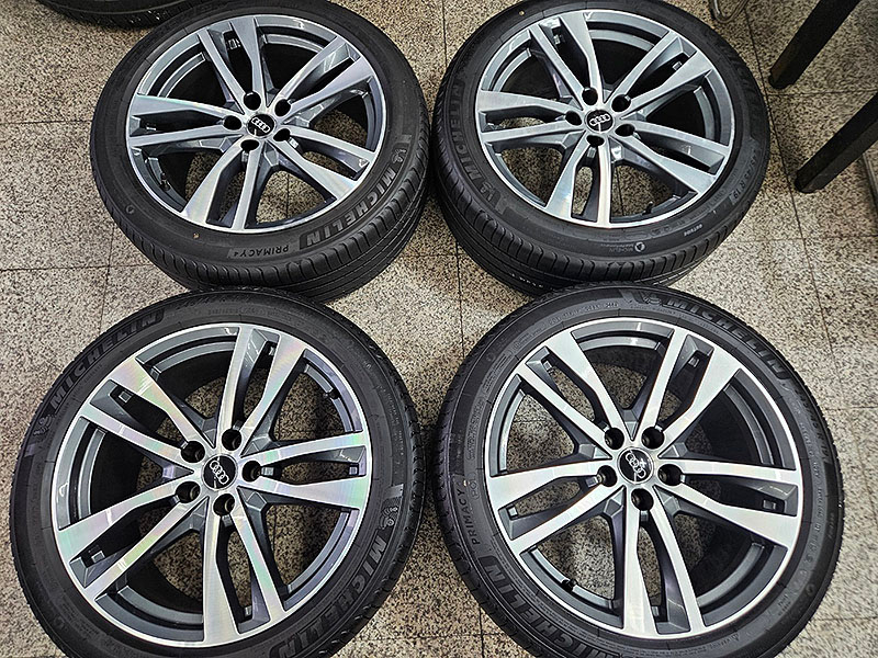 아우디 C8 신형 A6 45TDI 프리미엄 정품 19인치 휠 타이어 셋트 입니다 휠상태는 기스 없이 아주 깨끗한 상태 입니다 휠한개만 림쪽끝으로 부분폴리싱 된 듯 보여집니다 휠제원은 19인치 8.5J +40 5홀 PCD 112 네개 동일 제원 입니다 휠캡포함 입니다 타이어는 미쉐린 프라이머시4 흡음제 장착 타이어 입니다 사이즈는 245-45-19 네개 동일 사이즈 입니다 상태는 80%이상 90% 가까이 됩니다 가격은 휠 타이어 모두해서 170만원 생각합니다 사진은 실사진이구요 보시구 궁금하신점 연락주세요 010-8909-6207 입니다 거래지역은 서울 성동구 용답동 타지역은 택배거래합니다 현재 샵에 보관 중입니다 C7 A7 A8 폭스바겐 페이튼
