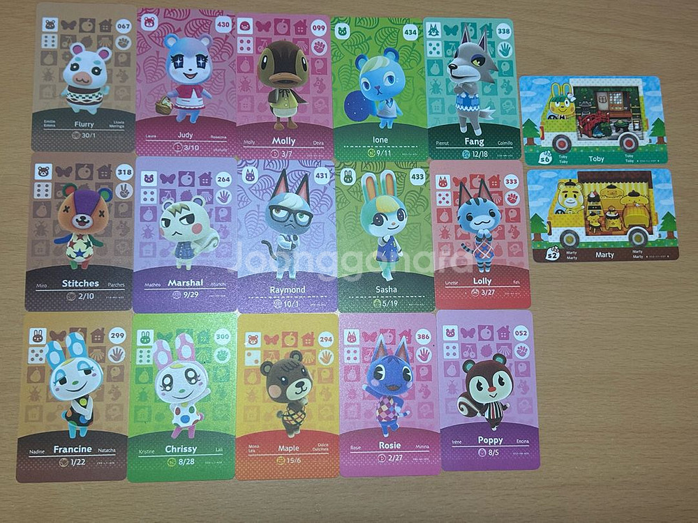호환용 아미보 각 장 당 5000원에 양도합니다~ 북미판 영어버전이지만 닌텐도 설정 따르기 때문에 한국어로 잘 나옵니다! 정상 인식 됩니다!! 사진 이외에도 주민 많습니다만 사진 찍기가 힘들어서 목록 따로 올려뒀습니다! (2페이지 참고) 안전결제 가능하고 결제하시기 전에 인식 사진 먼저 드릴게요! 호환용 아미보인 점 제발 확인하고 연락주세요!! ㅈㅍ이냐고 묻는 분들은 따로 채팅 안드립니다!