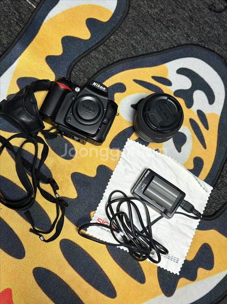DSLR 카메라와 18-125mm 렌즈. 충전기 포함되어 있어요. 사용감은 있지만 정상 작동하는 상태입니다. 별도 구매시 바디 - 9만원 렌즈 - 20만원
