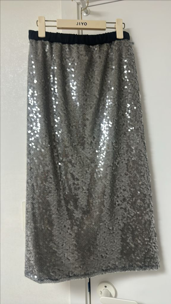 지요 실버 스팽글 스커트 크리스마스 연말 모임에 적합합니다 사이즈55 66 가능합니다 택달린 미시착 새제품입니다