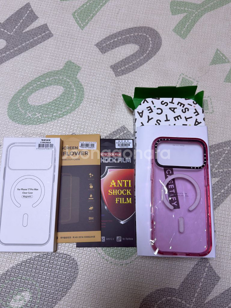 케이스티파이 케이스 아이폰 17프로맥스 ₩89,000원 구매함 필름2장 , 일반 투명케이스 같이 드려요 투명케이스 라, 생활기스 조금이랑 맥세이프 가운데, 작은 점 있어요 3주 사용 교환, 환불 x 직거래; 마포구청역4번출구 인근 택배 : 착불
