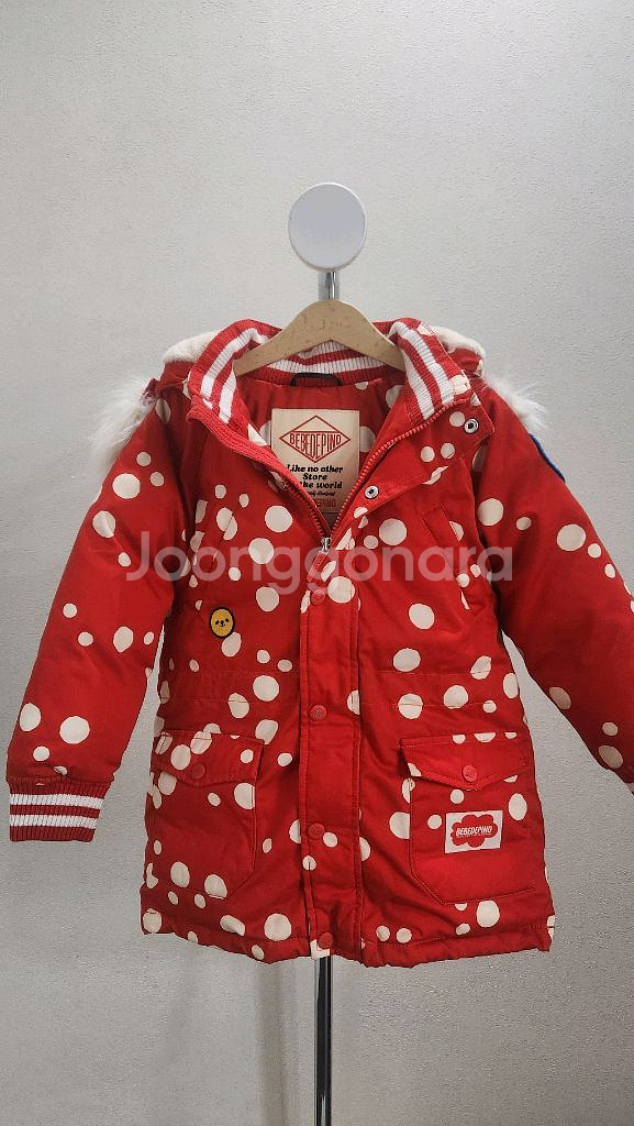베베드피노 덕다운 패딩점퍼입니다🥰 쨍한 레드 컬러에 도트 패턴이 귀여워요🍒 모자털도 엄청 부드러워서 아이가좋아했어요! 충전재상태 빵빵해서 한겨울에도 끄떡없어요~!