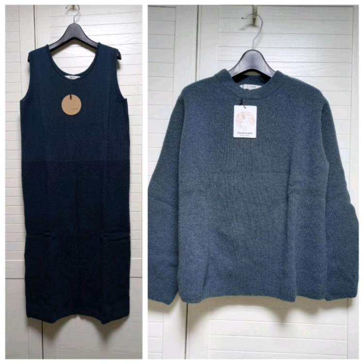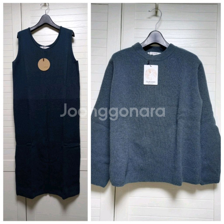 🎯 GS택배 가능합니다. (일반택배 4000원, 반값택배 2000원 추가해 주세요.) 손정완의 SJ WANI(SJ와니) 니트 투피스입니다. (슬리브리스 원피스 + 풀오버) 틸그린 색상으로 55사이즈입니다. 접어두어서 구김 있습니다. ㅡ 원피스는 민소매 원피스로, 블라우스 등과 레이어드해서 단독으로 활용할 수 있습니다. 허리부분을 경계로 짜임에 변화를 주었습니다. (윗부분은 민짜, 아랫부분은 골지) ㅡ 풀오버는 경쾌한 A라인 실루엣으로 살짝 볼륨 소매에, 사선 뒷트임 디테일이 있어 우아해 보입니다.
