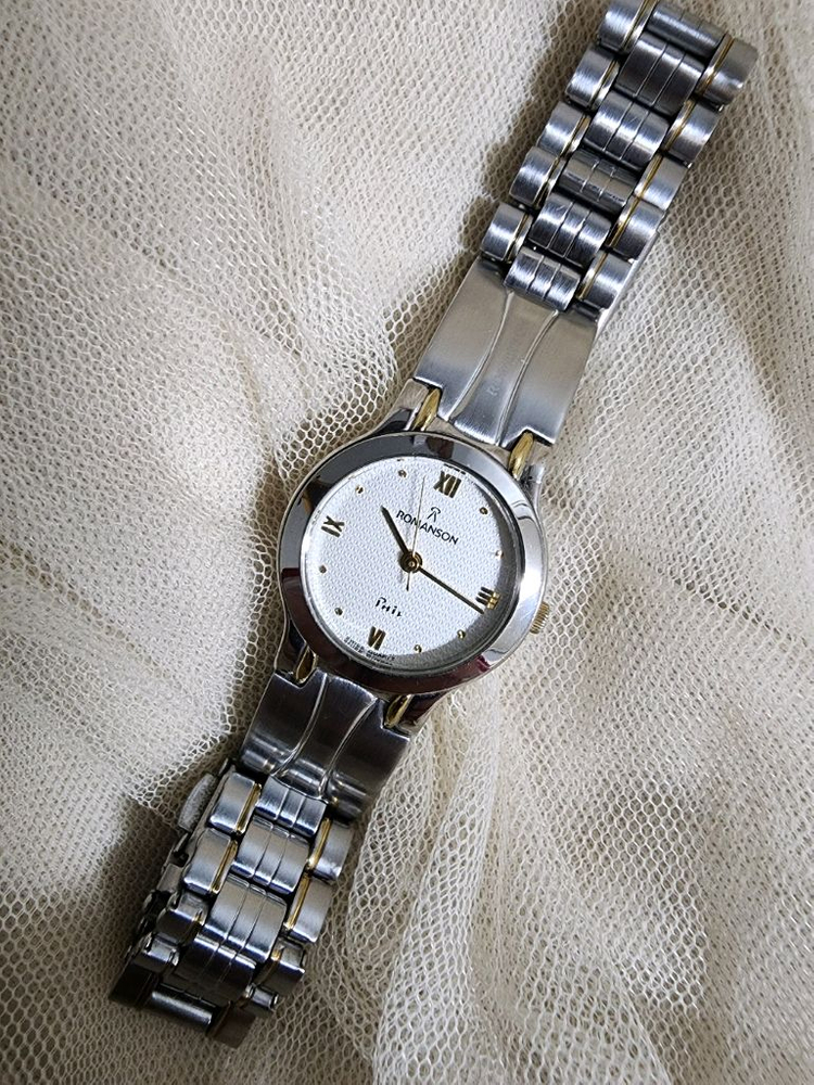 로만손 여성용 메탈 시계입니다. 은색 메탈 시계에 흰색 다이얼이 깔끔하게 매치됩니다. 데일리로 착용하기 좋은 디자인입니다. 전체적으로 생활기스가 존재하며, 특별한 하자는 없는 양호한 상태입니다. ☆배터리 교체완료 ☆사이즈ㅡㅡㅡ 약23mm 용두제외 구매를 원하신다면 안심결제를 이용하여 언제라도 결제하시면 됩니다. 감사합니다.