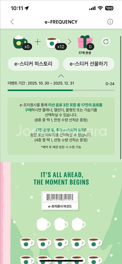 스벅 프리퀀시 일반 개당 800원에 팝니다 12개 있어요 구매 원하는 수량 적어서 채팅주세요