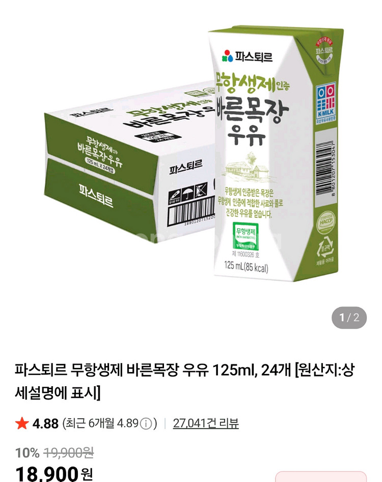파스퇴르 무항생제 바른목장 우유 125ml 24개 (새제품) 🔸️유통기한 : 2026년 5월 17일까지 🔸️문고리 거래희망 🔸️중고거래 특성상 교환.환불 불가합니다