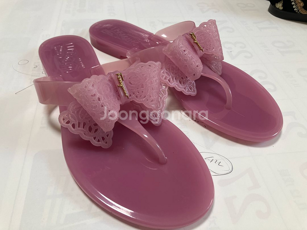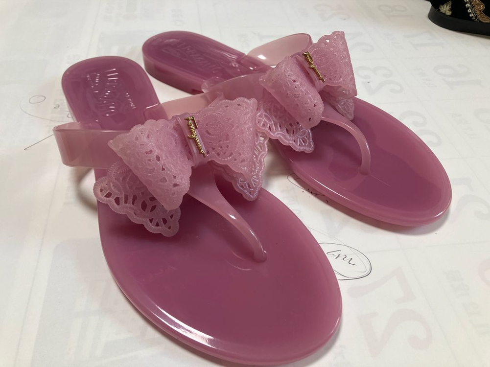 페레가모 플립플랍 샌들이에요. 골드 포인트가 있어서 더욱 예쁘고, 상태도 깔끔해 보여요. 여름에 신기 좋을 것 같아요!