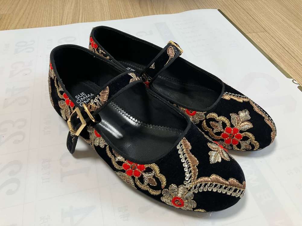 슈콤마보니 플라워 자수 벨벳 메리제인 슈즈입니다. 벨벳 소재에 화려한 플라워 자수가 놓여 있어 고급스러워요. 독특한 디자인으로 포인트 주기 좋은 신발입니다. 밑창이 살짝 닳아있어요. 사이즈는 235입니다.