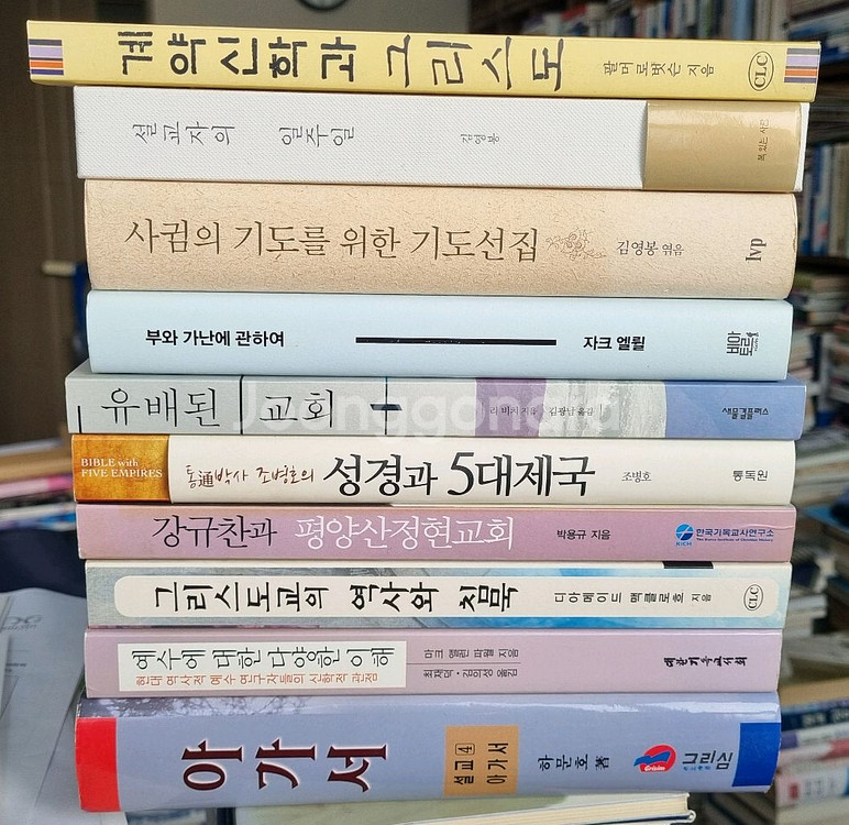 기독교서적 40%할인 판매합니다. 택배비 4,000원, 반값택배는 2.500원추가이며 5만원이상 구입시 택배비 무료입니다. 번호로 문의해주시면 감사하겠습니다. 판매자의 다른 게시물과 함께 구입가능합니다 010-292팔-615구 (문자주세요) 52. 계약신학과 그리스도(팔머 로벗슨) 13,000원 - 8,000원 *** 윗면과 밑면에 도장 *** 53. 설교자의 일주일(김영봉) 19,500원 - 11,000원 판매완료 54. 사귐의 기도를 위한 기도선집(김영봉) 18,000원 - 10,000원 *** 맨앞장 증정도장 *** 55. 부와 가난에 대하여(자크 엘륄) 22,000원 - 13,000원 56. 유배된 교회(리 비치) 16,000원 - 9,000원 57. 성경과 5대제국(조병호) 15,000원 - 9,000원 58. 강규찬과 평양산정현교회(박용규) 12,000원 - 7,000원 59. 그리스도교의 역사와 침묵 22,000원 - 13,000원 60. 예수에 대한 다양한 이해 20,000원 - 12,000원 61. 아가서(하문호) 24,000원 – 14,000원 62. 개혁신학과 한국 장로교 보수신학(문병호) 18,000원 - 10,000원 63. 예수와 이스라엘(데이비드 E. 홀베르다) 9,000원 5,500원 64. 설교 심포니(요한 H. 실리에) 23,000원 - 14,000원 65. 인간의 일생(이재철) 11,000원 - 6,000원 66. 조건 없는 압도적인 사랑(A.W. 토저) 18,000원 - 10,000원 67. 깊은 예배(토마스 G. 롱) 10,000원 - 6,000원 68. 비유로 말씀하시더라(이동원) 16,000원 - 10,000원 69. 나의 아버지 박형룡(박아론) 20,000원 - 12,000원 70. 개혁교회 신앙고백(배광식/한기승) 22,000원 - 13,000원 71. 요한계시록 그 궁극적 승리의 보장(서문강) 16,000원 – 10,000원 72. 묵상 성도의 품격(한병수) 17,000원 - 10,000원 73. 구속사로 읽는 이사야(최윤갑) 19,000원 - 11,000원 74. 그의 나라 그의 통치(송영윤) 26,000원 - 15,000원 75. 하룻밤에 읽는 종교개혁 이야기(어윌 루처) 13,000원 - 8,000원 76. 성경신학(게할더스 보스) 17,000원 - 9,000원 *** 약간의 밑줄 5페이지정도 *** 77. 베른하르트 로제 - 루터 입문 25,000원 - 15,000원 78. 천년왕국이란 무엇인가 20,000원 - 10,000원 *** 약간의 형광밑줄 10페이지정도 *** 79. 모두를 위한 기독교교양(손성찬) 23,000원 - 13,000원 80. 요한계시록 40일 묵상여행(이필찬) 12,000원 - 7,000원 81. 오늘날에도 기적이 일어날수 있는가(상+하) 90,000원 – 54,000원