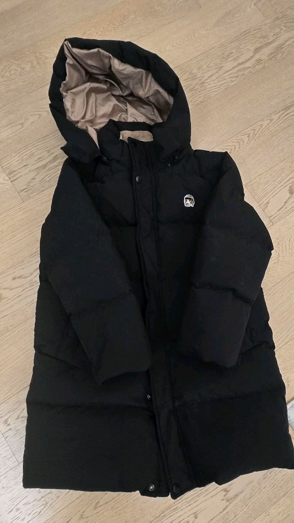 솜털80프로 깃털20프로 헤지스 패딩점퍼입니다. 후드가 있고 안감은 브라운 컬러로 되어있어요. 전체적으로 깔끔한 상태로 보관되어 있습니다. 사이즈 130(9y)이고 택배비는 착불입니다.
