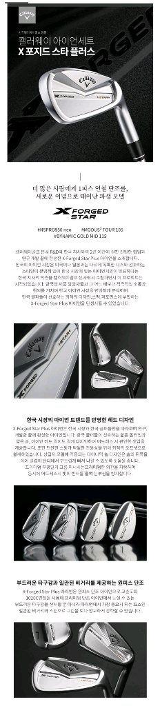 캘러웨이 X포지드스타플러스24 5-P 6아이언입니다. 아이언에 대한 상세설명은 사진에 첨부하였습니다. N.S 950 샤프트가 가볍거나 스피드 좋은 골퍼에게 적합한 다골MID115 S200 샤프트입니다. 죠스,보스,rtx 등 웨지 별도 구성하시면 더 좋습니다. 상태는 사용감 적으며, 사진과 같이 매우 좋습니다. 정품 아이언 커버도 같이 보내드립니다. 중고거래 특성상 반품은 어려우니 신중한 구매 바랍니다.