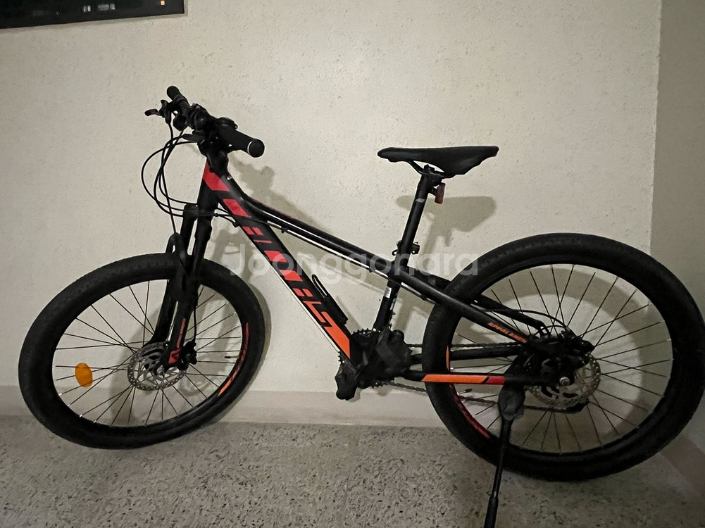 산악자전거 판매합니다. 블랙 프레임에 오렌지 포인트가 멋스러운 디자인이에요. 전체적으로 깔끔한 상태로 잘 관리되어 있습니다. 01051199363