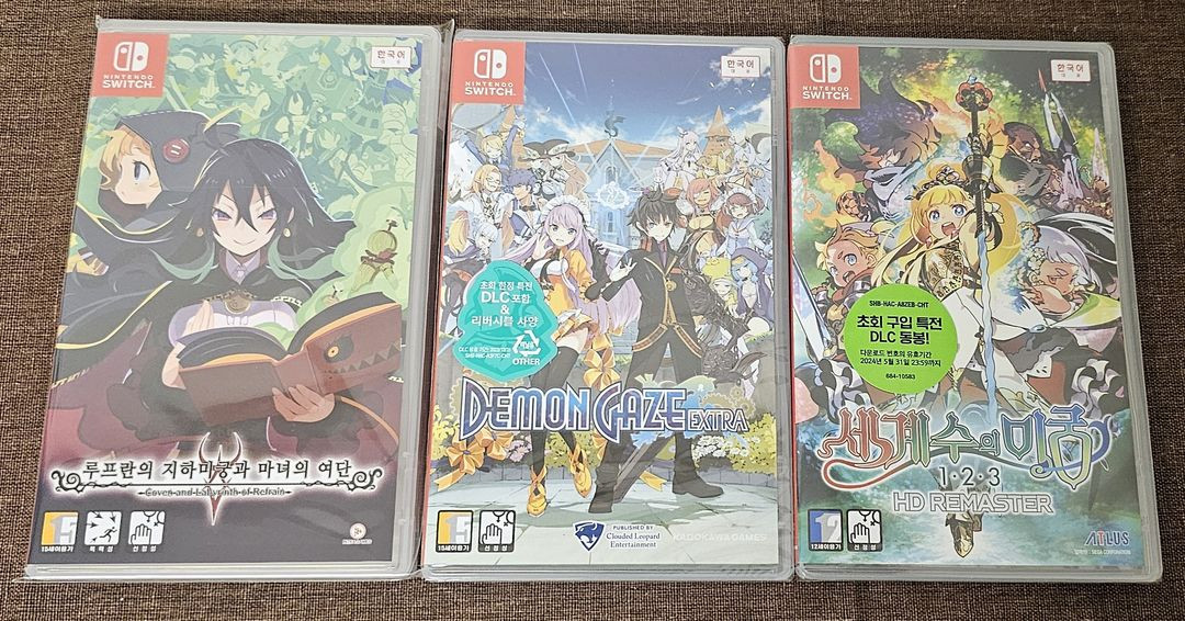 DRPG Set 일괄판매 -루프란의 지하미궁 중고품 -데몬게이즈 엑스트라 새상품 -세계수의 미궁 1·2·3 HD 리마스터 새상품 중고나라 안심거래로만 판매합니다. 네고X, 미션X, 직거래X, 계좌거래X 해당사항 문의시 차단 묶음상품은 개별 판매 불가입니다. 우체국 택배로만 발송합니다. 택배는 우체국 인터넷 접수 발송으로 2~3일 걸립니다 금요일과 토요일은 주문 불가입니다. 추가 배송료가 발생되는 지역은 주문이 취소될 수 있습니다.