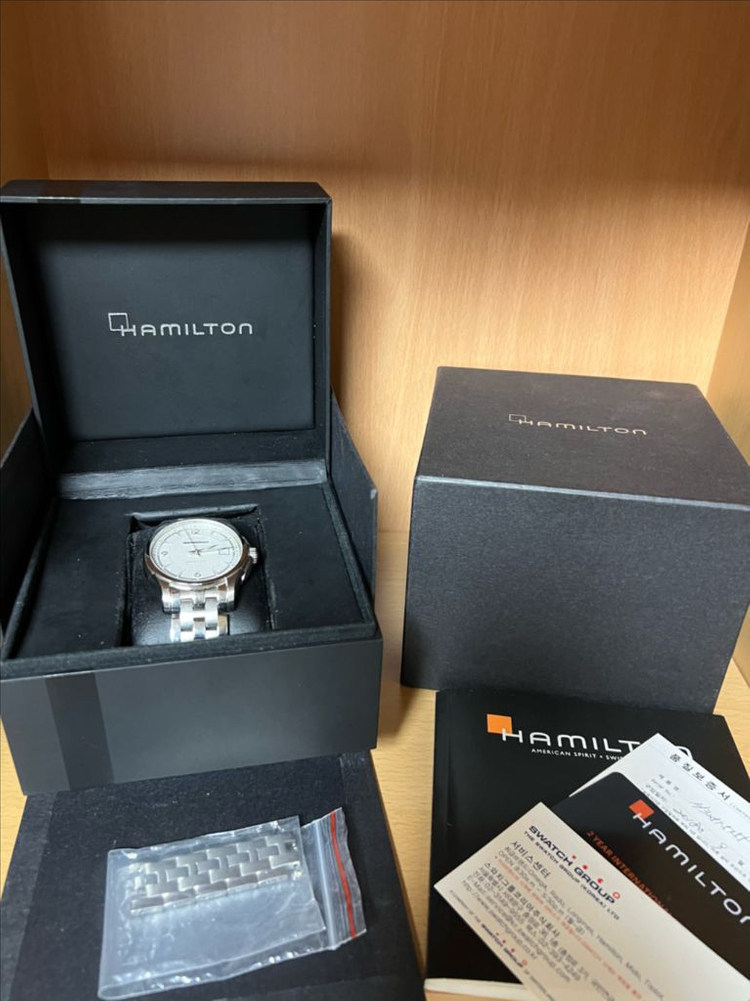 해밀턴 재즈마스터 뷰매틱 흰판 H32515155모델입니다. 브레이슬릿 모델이며 보증서 빛 여분코 박스 사진 구성처럼 있습니다. 상태랑 시세 대비 저렴하게 올려봅니다. 택포입니다!