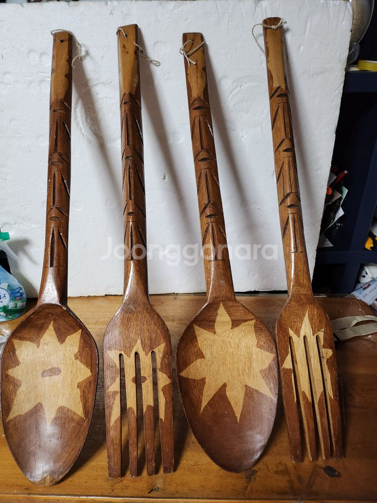 목공예 수저 &포크 4점 일괄 입니다 예로부터 집에 걸어놓으면 복이 들어온다 하여 집안에 걸어 두곤 하였습니다 68x14.5cm 입니다