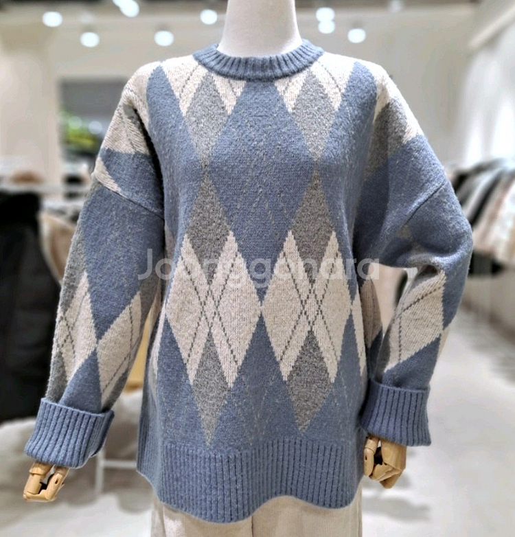 ■코인코즈 아가일니트 한번도 안입은 새옷 오염하자없음 프리사이즈(55~66) 오버핏 넉넉한 사이즈로 편하게 입는 캐주얼 니트 폭닥한 느낌의 도톰하고 부드러운 니트 총64 어깨65 소매46 가슴60