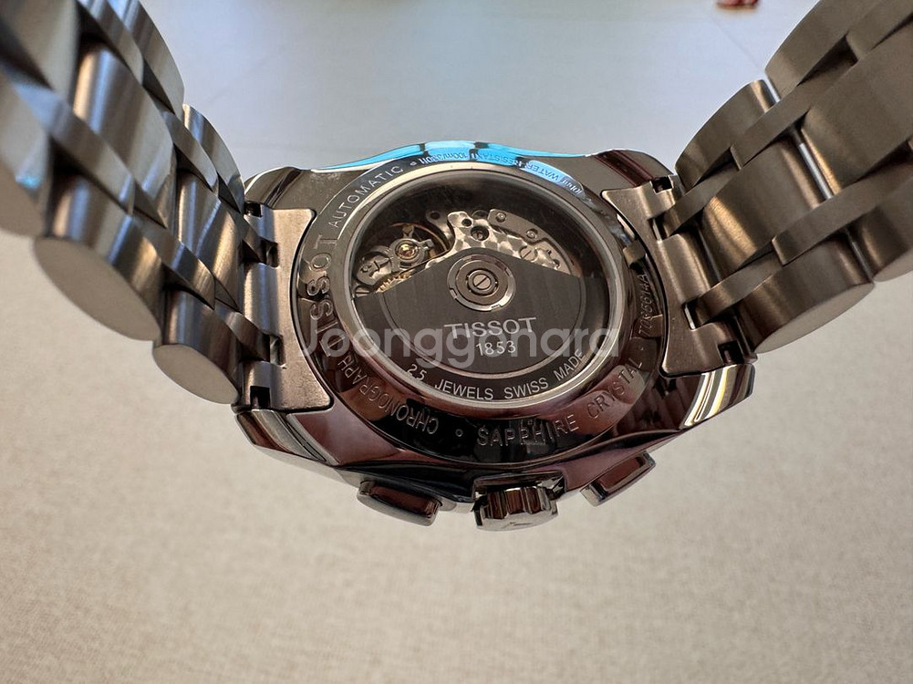 티쏘 꾸뜨리에 크로노 오토매틱 벨쥬 7750 - 사파이어 크리스탈 글래스 - 벨쥬 7750 무브먼트 (태그호이어, 브라이틀링, IWC, 오메가, 론진, 해밀턴, 오리스 등 사용) 무브 내구성 좋음 - 시계 전체 부품 교체 내역이 있습니다 (오버홀 및 다이얼 용두 물리 버튼 모두 교체) - 티쏘 정품 메탈 브레이슬릿 및 가죽 줄 포함 - 27년 9월까지 스와치그룹 정식 센터 보증 안녕하세요. 8~9년 전 신세계 부산 센텀에서 구매했고 당시 티쏘 라인업중에서벨쥬 7750 무브 탑재는 오토매틱 제품중에서 유일하게 이 제품만 들어가 있었습니다. 9월에 대구 신세계 티쏘 매장 AS 공식 센터에 접수, 전체 오버홀 및 다이얼, 용두 버튼 등 전체 교체 되었고 헤드와 브레이슬릿까지 폴리싱 진행 되었습니다. 스와치 그룹은 오버홀 진행시 무브먼트 교체로 진행하다보니 무브먼트와 다이얼, 시 분침, 물리 버튼 등은 모두 새거라고 보시면 됩니다. 무브먼트 교체 및 수리, 폴리싱 등 ₩555,000원 결제되었고 영수증 및 보증서 있습니다. 첨부되어 있는 수리내역 및 보증서로 2년간(27년 9월) 정식 센터 보증기간 있으니 참고하세요. 구성품은 기존 티쏘 케이스(보관만 하던 중이라 상태 좋음), 브레이슬릿 여유 링크, 티쏘 정품 가죽 줄 포함하여 다 드립니다. 오토매틱 시계 특성상 택배 거래는 하지 않고, 직거래 합니다.