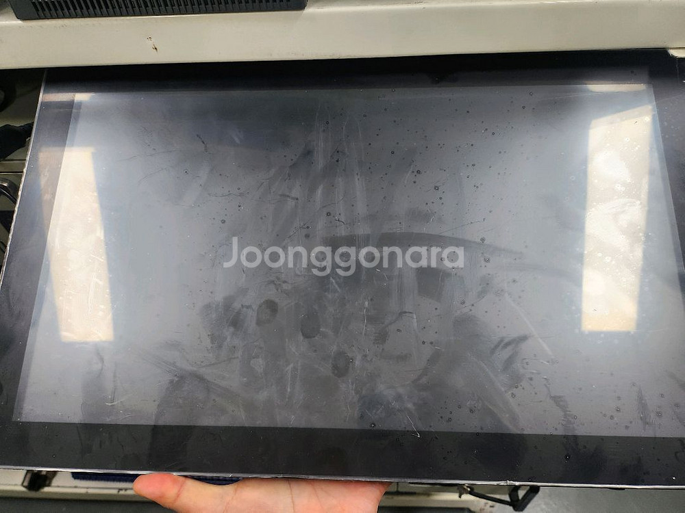 카멜 브랜드의 22인치 대형 모니터 태블릿 PC입니다. 표면에 스크래치와 사용감이 있는 중고 상품이에요. 업무용이나 영상 시청용으로 활용하기 좋습니다. 본체와 충전기 있습니다. 거진새거입니다.