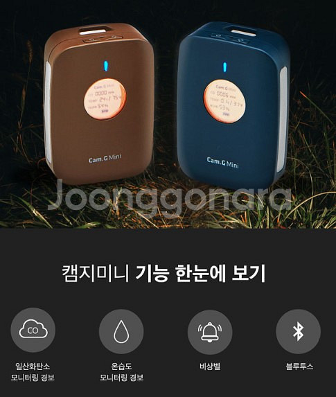 캠지미니 무선 보안카메라 새상품이에요! 브라운과 블루 두 가지 색상으로 구성되어 있고, 은습도 모니터링과 비상벨 알림 기능까지 있어서 집 보안용으로 딱 좋습니다.
