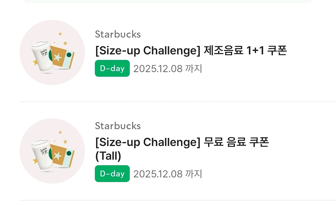 개인정보(거래정보)를 주고받는 행위는 사기에 노출될 수 있으므로 즉시 중고나라로 신고해 주세요12월8일 입금하시면 qr코드보내드립니다(10분유효) 제조음료1+1쿠폰 3000원 무료음료Tall쿠폰 4500원 차액결제시 사이즈업가능